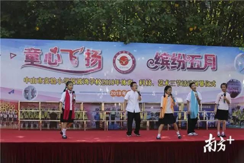 5月31日上午,中山市實驗小學藍波灣學校2018年體育、科技、藝術三節(jié)活動閉幕儀式舉行?,F(xiàn)場,全校1300多名學生帶來了十三個節(jié)目表演。在這里,孩子們個個都是可愛的“小演員”。