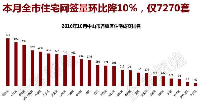 根據(jù)合富輝煌(中國(guó))中山公司市研部數(shù)據(jù)監(jiān)測(cè):2016年10月31日,中山市住宅庫存36629套,環(huán)比上月持平。其中坦洲鎮(zhèn)以5974套居全市鎮(zhèn)區(qū)住宅庫存榜首,火炬開發(fā)區(qū)3400套排名第二,石岐區(qū)2916套居第三。由于多個(gè)項(xiàng)目新增,三鄉(xiāng)鎮(zhèn)的庫存上升為第四位。