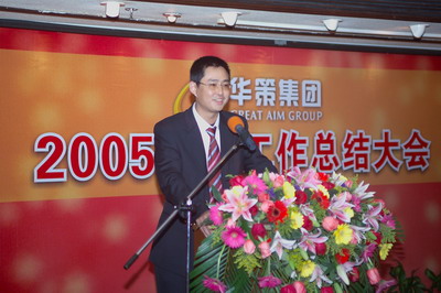 楊峰主席在年度總結報告中用一系列數字對比對集團在2005年取得的優良成績給予充分肯定。截止2005年底,全集團資產負債率與去年的同期比下浮了69.22%,全年清還各大商業銀行的歷史貸款高達3.5億元,清理歷史債務1億多元。這一目標的實現,給華策集團在今后的發展道路減少了壓力,增強了抗衡力和市場競爭力。與此同時,在過去的一年中,全集團在業務經營方面也取得了好成績。全年完成經營性收益7億元,(其中房地產項下收入4.08億元,貿易項下收入2.57億元,其他收入3400多萬元);全集團全年為國家創造稅收約6500萬元,上繳稅收比去年同期增長25.38%。這一系列數字,對集團的經營業績作了極好的闡釋。