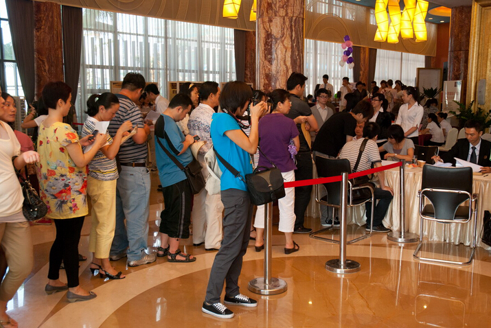 選房從下午2點正式開始,南灣國際門前早已大排“車龍”,極目望去亦難見盡頭。2棟新品更是搶手,其91㎡、125㎡單位再次成為熱門。銷售中心內人潮涌動,每位客戶都一邊忙著聽置業顧問講解,精挑細選自己的“心水”單位,一邊注意是否輪到自己的選房號碼。