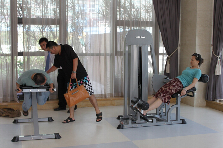 圖為一客戶簽約之余在桌球室揮桿自娛