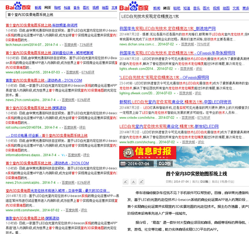 6月28日,來自華策光通信科技有限公司自主研發,擁有國內國際專利數十項,基于LED白光室內定位技術U-beacon系統的商業化運營APP--“易逛”,在江蘇常州市進行試運營并進入內測階段,成為世界上首個實現商業化運營并實現室內3D實景地圖的光定位技術。據悉,該產品在內測階段結束后將率先進入廣深等一線城市,全面鋪開。該消息一經報道,立刻引起廣泛關注。包括網易新聞、新浪財經、鳳凰資訊、南方都市報、深圳晚報等數十家媒體爭相報道。