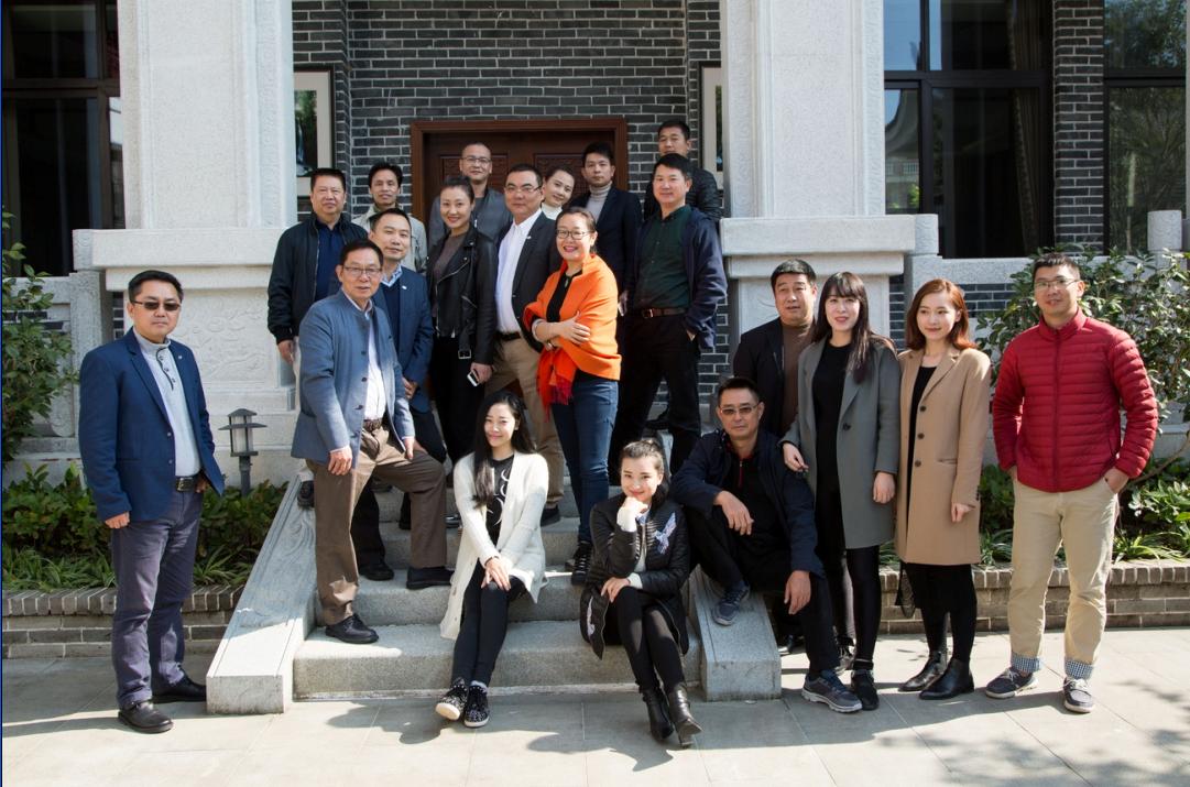 董事局主席楊峰(左四)與董事局成員在文德草堂合影留念