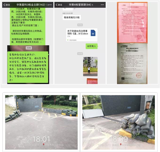 9月12日,華策旗下的嶺峰國際、龍騰灣、南灣國際、粵海國際、星科國際公館等各個小區(qū)的物業(yè)工作人員已經(jīng)在電梯、大堂、公告欄等小區(qū)顯眼位置發(fā)布了防臺風(fēng)的通知,提醒居民做好防風(fēng)措施,同時各項目負(fù)責(zé)人通過電話、微信業(yè)主群、微信管家群緊急發(fā)布臺風(fēng)預(yù)警公告。