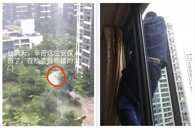 當(dāng)天風(fēng)雨最猛烈時,龍騰灣小區(qū)附近多個小區(qū)的玻璃窗戶被刮走,有些從高空墜落,小區(qū)的樹木被刮倒,對地面車輛和人員產(chǎn)生巨大安全隱患。此時,物業(yè)工作人員利用每個雨停的間隙第一時間手動清理各個小區(qū)路面。同時有組織有紀(jì)律地定時展開大范圍巡查排險,發(fā)現(xiàn)有未關(guān)嚴(yán)實的窗戶,就打電話聯(lián)絡(luò)業(yè)主,聯(lián)絡(luò)不上的,在停用電梯的情況下,保安徒步上樓敲門提醒。
