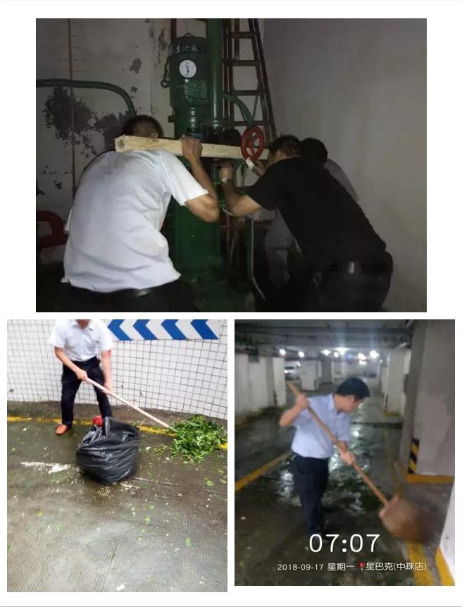 為業(yè)主服務(wù),與時間賽跑,同風(fēng)雨抗?fàn)帯?月16日,2018年地表最強(qiáng)臺風(fēng)“山竹”來襲!物業(yè)公司的工作人員和保安全部在崗,南灣國際小區(qū)除了開辟兩條電話熱線隨時等候業(yè)主的求助召喚,更不顧風(fēng)雨主動排查險情,主管人員帶隊巡查地下車庫排水系統(tǒng),確保80臺水泵工作正常。