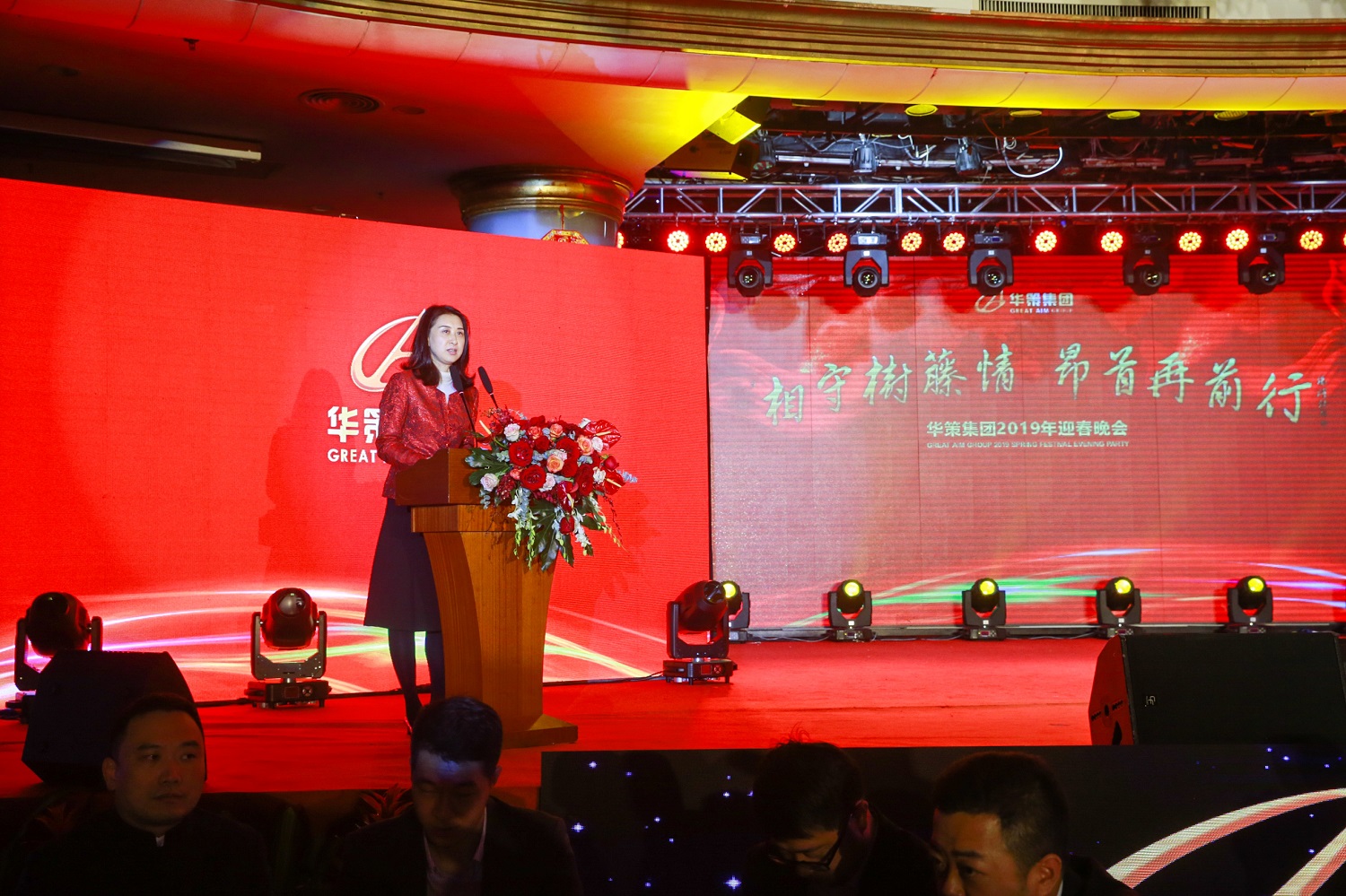 晚上18點30分,迎春晚會正式開始。首先,華策集團董事局常務副主席楊智雄上臺致新春賀詞。