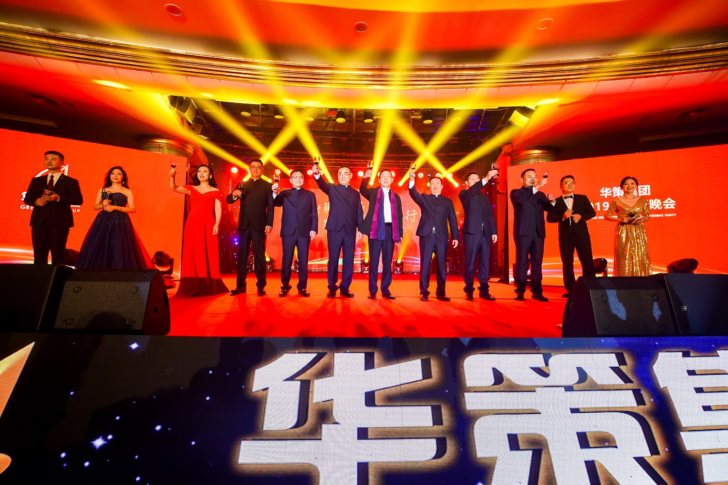 緊接著,本次晚會的主持人閃亮登場,邀請董事局領導上臺敬酒,在美好的賀詞與期許中,晚宴正式開始。