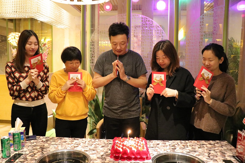 幸福聚會,情誼相牽。拓展訓(xùn)練結(jié)束后,壽星們移步至就餐地點(diǎn)。在飯桌上,彼此有說有笑,談?wù)劰ぷ?,嘮嘮家常,其樂融融。集團(tuán)財(cái)務(wù)部副總經(jīng)理羅紅秀和集團(tuán)行政總監(jiān)助理?xiàng)钌佥x表示,在華策集團(tuán)工作已有十幾載,每次參與生日會活動都倍感溫暖,感謝華策一直以來對員工的關(guān)懷。如此精心安排的集體生日會,不僅豐富了員工精神文化生活,而且增強(qiáng)了員工歸屬感與集體榮譽(yù)感。