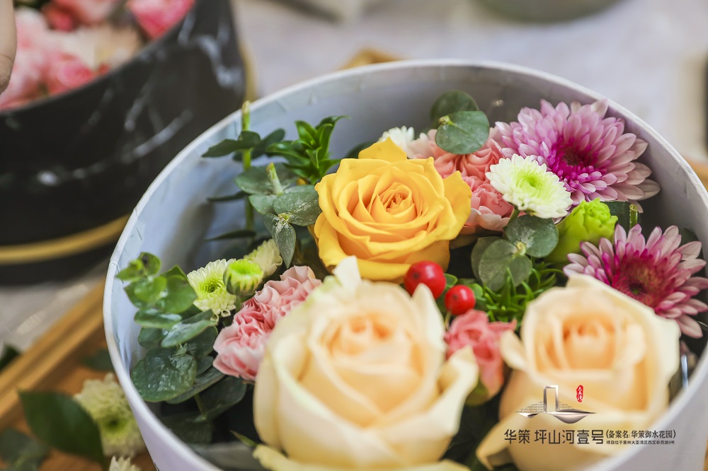 現(xiàn)場精彩紛呈,驚喜不斷。營銷中心設(shè)計感十足,每個細節(jié)都體現(xiàn)著項目的用心之至。入口處精心布置了豐富的金屬花箱 Flower Box、定制金屬框以及繽紛的鮮花束;移步而進,備有精美茶歇供現(xiàn)場來賓品嘗,加之極具儀式感的創(chuàng)意簽到,為項目人文美學(xué)的盛啟增添一抹色彩。鮮花禮盒定制的尊貴體驗、專業(yè)花藝師的現(xiàn)場教學(xué),豎琴優(yōu)雅的表演,為來賓營造活動氛圍,獻上一場視聽美學(xué)盛宴,感受華策集團的世界級審美標準和匠心品質(zhì)。