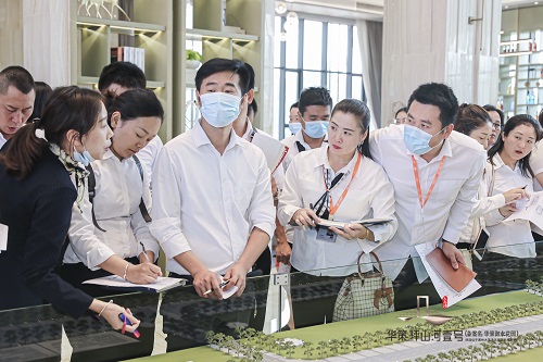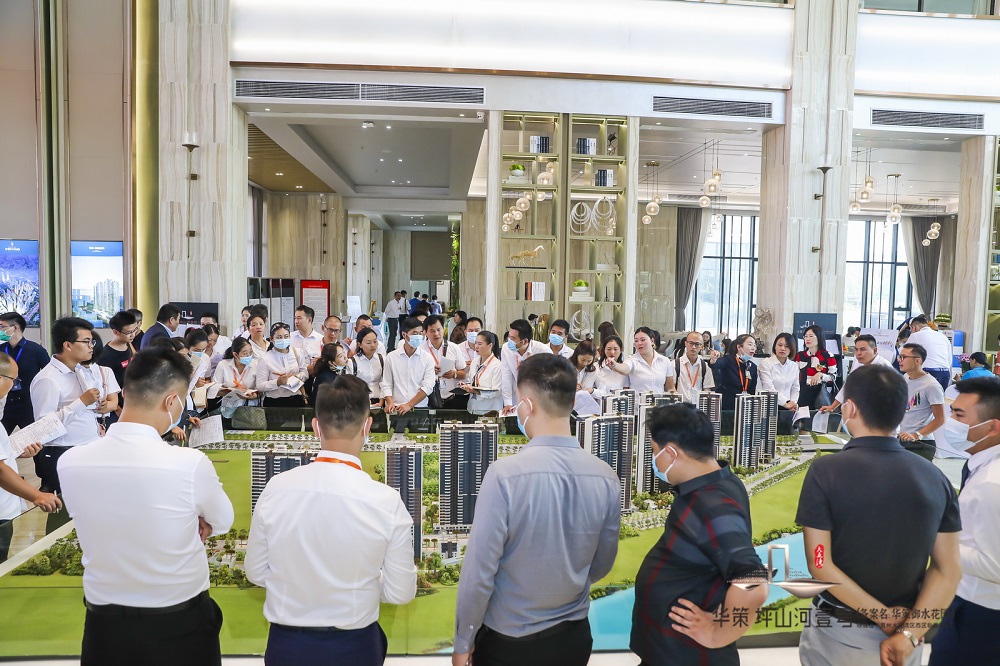 華策坪山河壹號營銷中心沙盤區(qū)和洽談區(qū)人流涌動