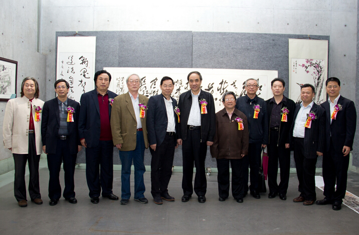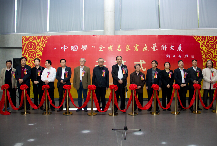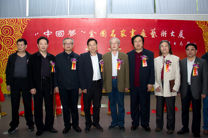 中國書畫家協會副主席、集團董事局主席楊峰(左五)出席“中國夢”全國名家書畫藝術大展