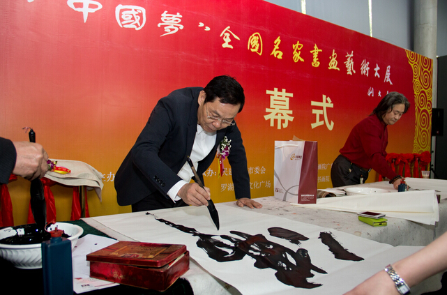 中國書畫家協會副主席、華策集團董事局主席楊峰出席4月12日至20日在深圳市羅湖創意文化廣場舉行的、由民建廣東省委會、中國書畫家協會主辦,深圳市羅湖區文化公園、深圳市羅湖創意文化廣場承辦的“中國夢?全國名家書畫藝術大展”。