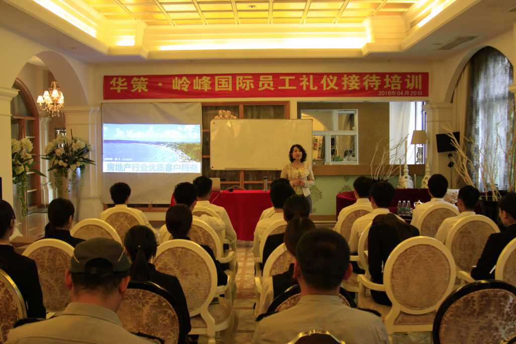 4月29日,華策·嶺峰國際三期項目鳳凰郡盛大開盤。為迎接項目開盤,樹立企業形象,強化服務意識,提升服務質量,4月20日,嶺峰國際客服中心特邀珠海英捷企業管理顧問有限公司的顏玉老師對客服中心30余名在職員工進行了禮儀接待培訓。