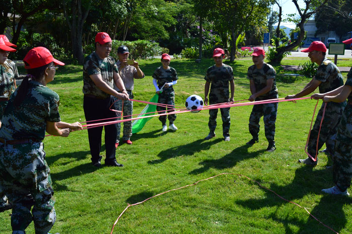 在薛紅副總監的動員講話后,拓展活動正式拉開帷幕。本次活動主題為“揚華策風采,展團隊雄風”,內容包括智力取珠、競技攀巖、星球大戰和室內真人野戰等項目。隊員們隨機組成4個活力團隊,在推選團隊核心、產生隊名和口號的過程中迅速形成團隊意識,以學習、平等、合作的心態投入到團隊活動中。