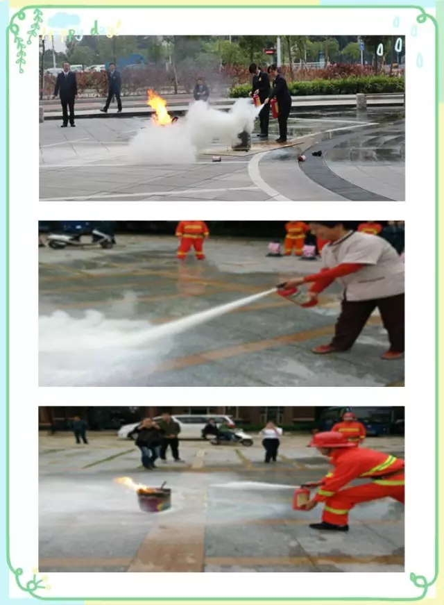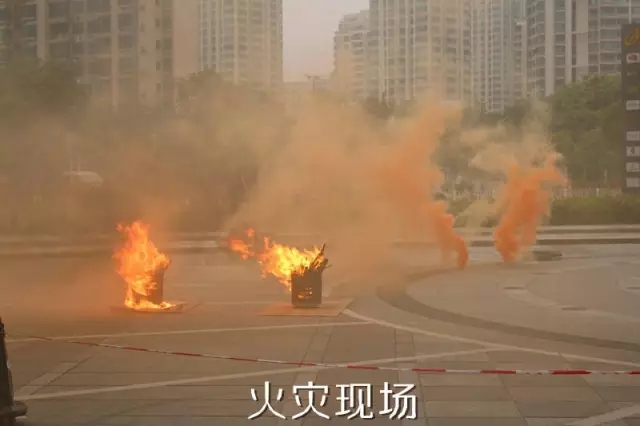華策南灣國際公館、嶺峰國際花園、粵海國際花園、龍騰灣山莊四個項目在項目經理的組織下,義務消防隊員接到火災指令后,迅速集合,在最短的時間內趕到火災現場,熟練的將消防水帶連接消防栓滅火、疏散、救援。隨后,隊長指導消防隊員,演練用干粉滅火器進行現場滅火。