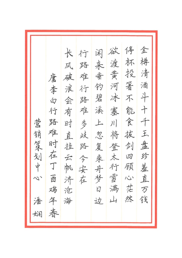 4月27日,華策集團“首屆硬筆書法大賽”圓滿落幕,經綜合評選,10幅優秀作品脫穎而出,分別獲一、二、三等及優秀獎。