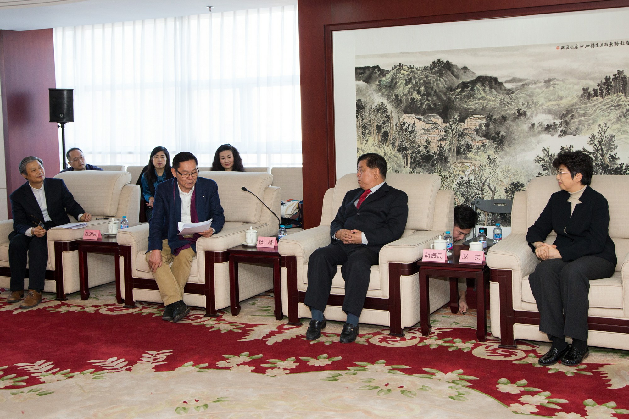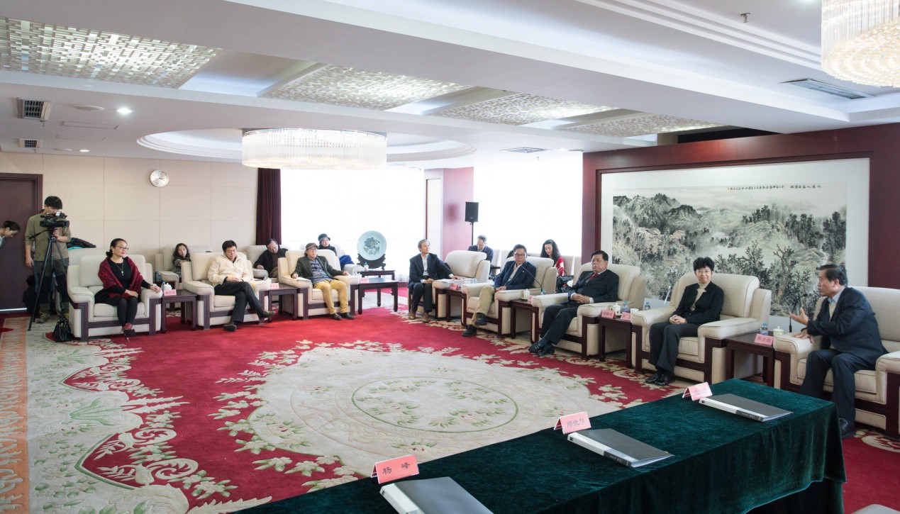 當天捐贈現場,楊峰主席首先與中國文聯黨組書記、副主席、書記處書記趙實,全國政協常委、教科文衛體副主任、中國文學藝術基金會理事長胡振民,全國政協常委、中國書法家協會主席蘇士澍,中國舞蹈家協會主席、中國文學藝術基金會副理事長、秘書長馮雙白,中國書法家協會分黨組副書記、秘書長鄭曉華,中國書法家協會廣東分會副主席紀光明,及書畫家代表胡寶利、李征、楊宗霖等人展開親切交流,并表達對書法藝術傳承事業的關注與支持。