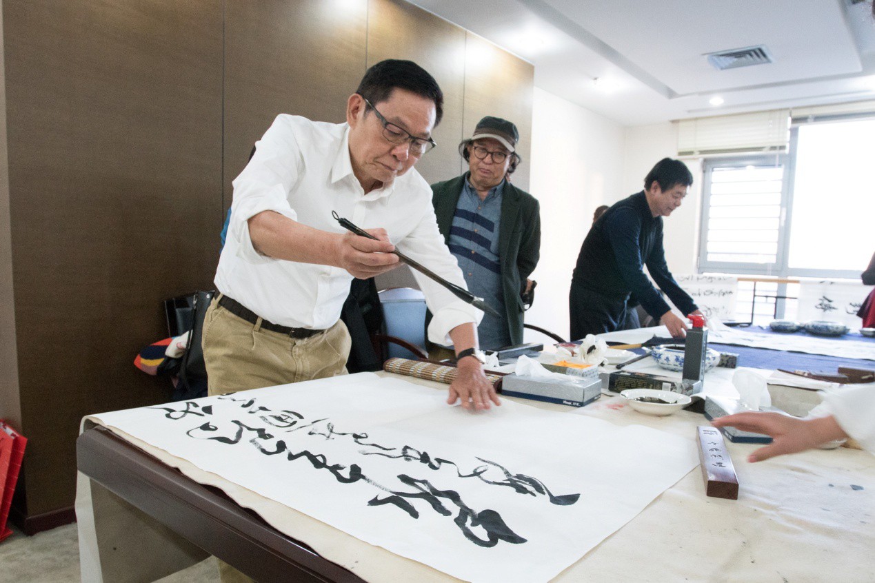 簽約儀式結束后,楊峰主席陪同書畫藝術家們一起現場揮毫,開展筆會交流。