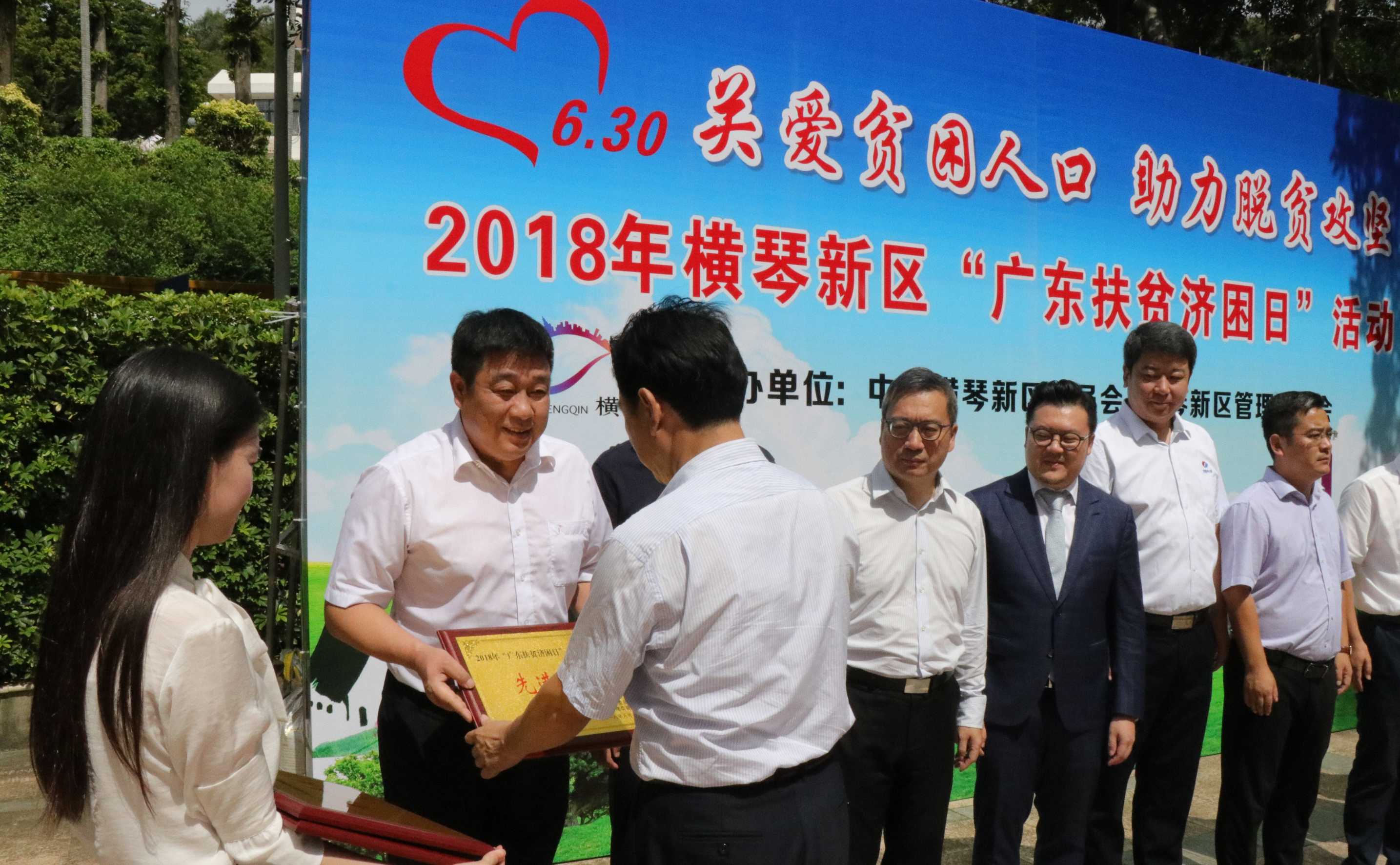日前,珠海市橫琴新區舉辦2018年“廣東扶貧濟困日”捐款倡議活動,并對做出突出貢獻的企業及個人予以表彰。橫琴新區黨委書記牛敬同志高度重視本次活動。橫琴新區黨委副書記、管委會主任楊川同志出席儀式活動并作動員講話。表彰儀式中,華策集團榮獲“廣東扶貧濟困日”慈善公益活動先進單位,行政副總監薛紅代表集團領取獎牌。
